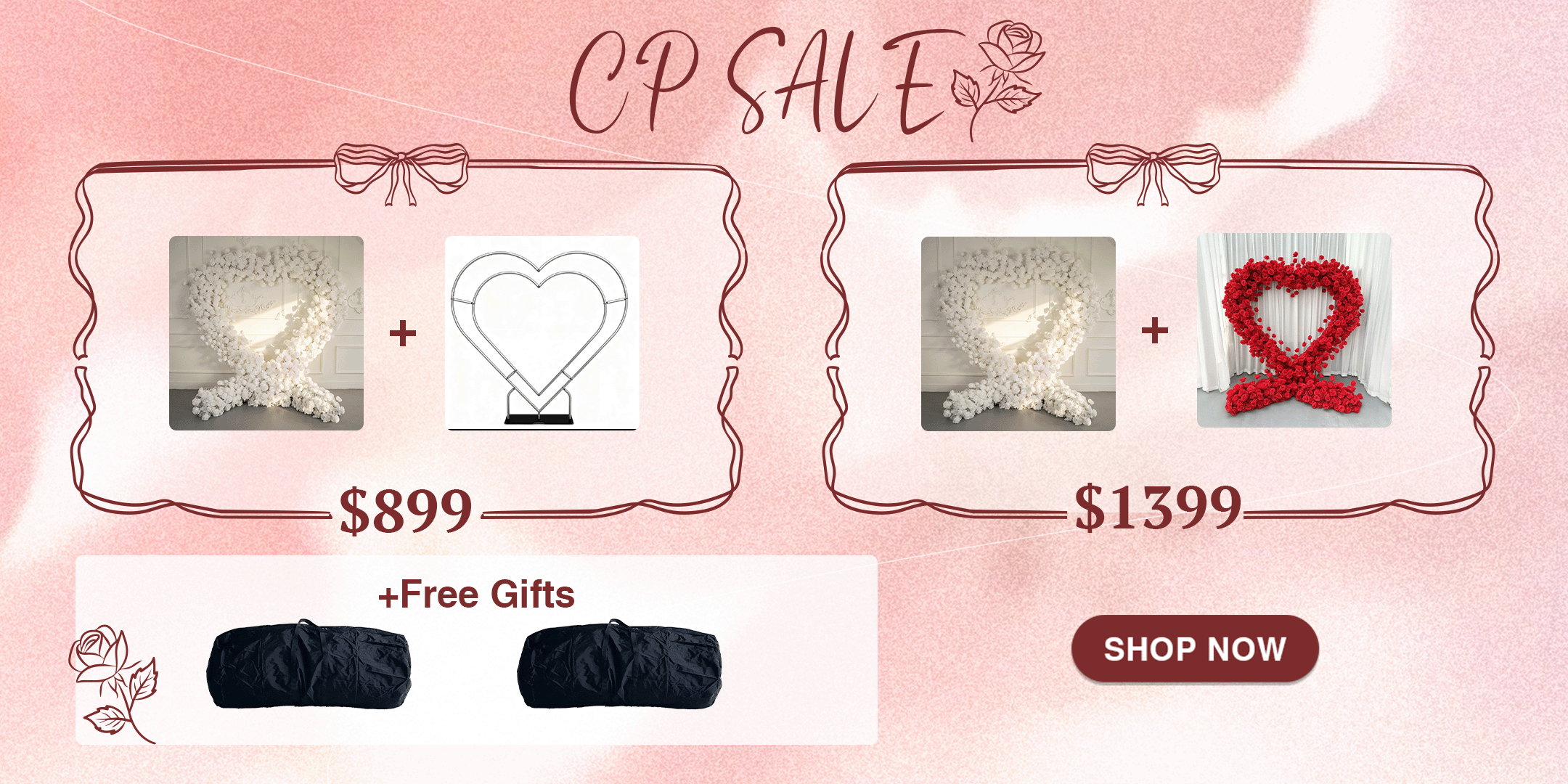 Flower Arch 8x8ft Heart Shaped Red Roses Floral Arch Set Proposal Wedding Party Decor