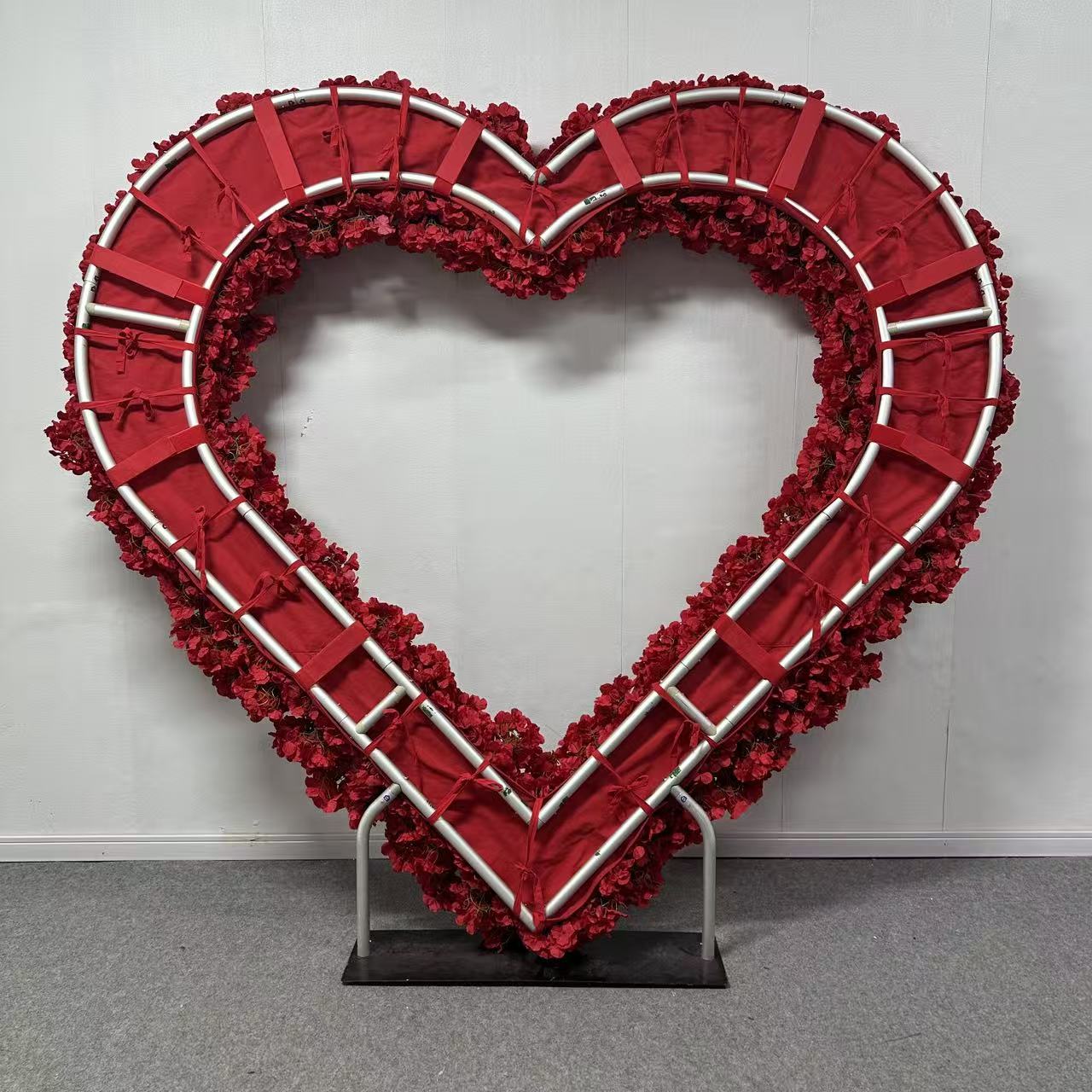 Flower Arch 8x8ft Heart Shaped Red Hydrangea Floral Backdrop for Proposal Wedding Party Decor