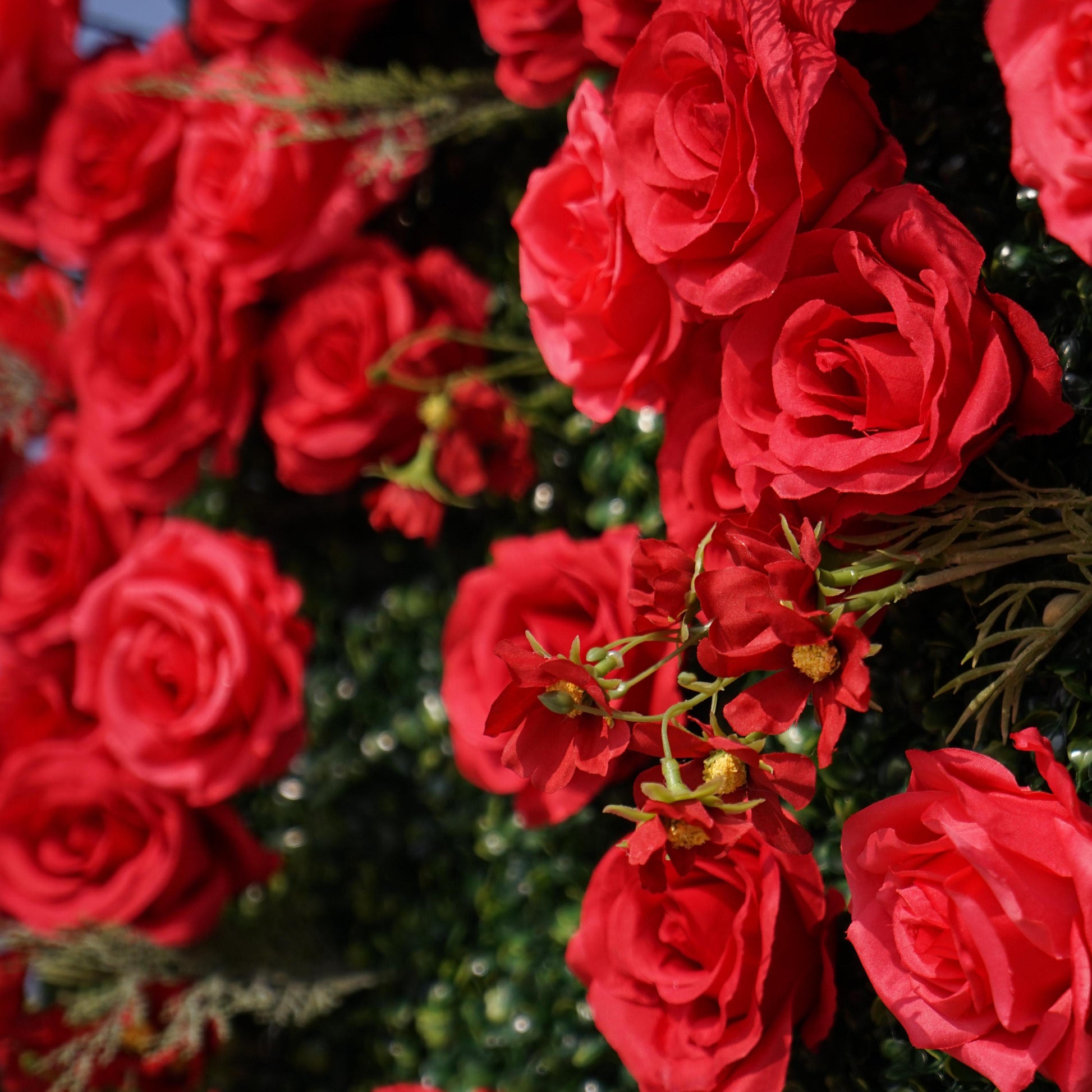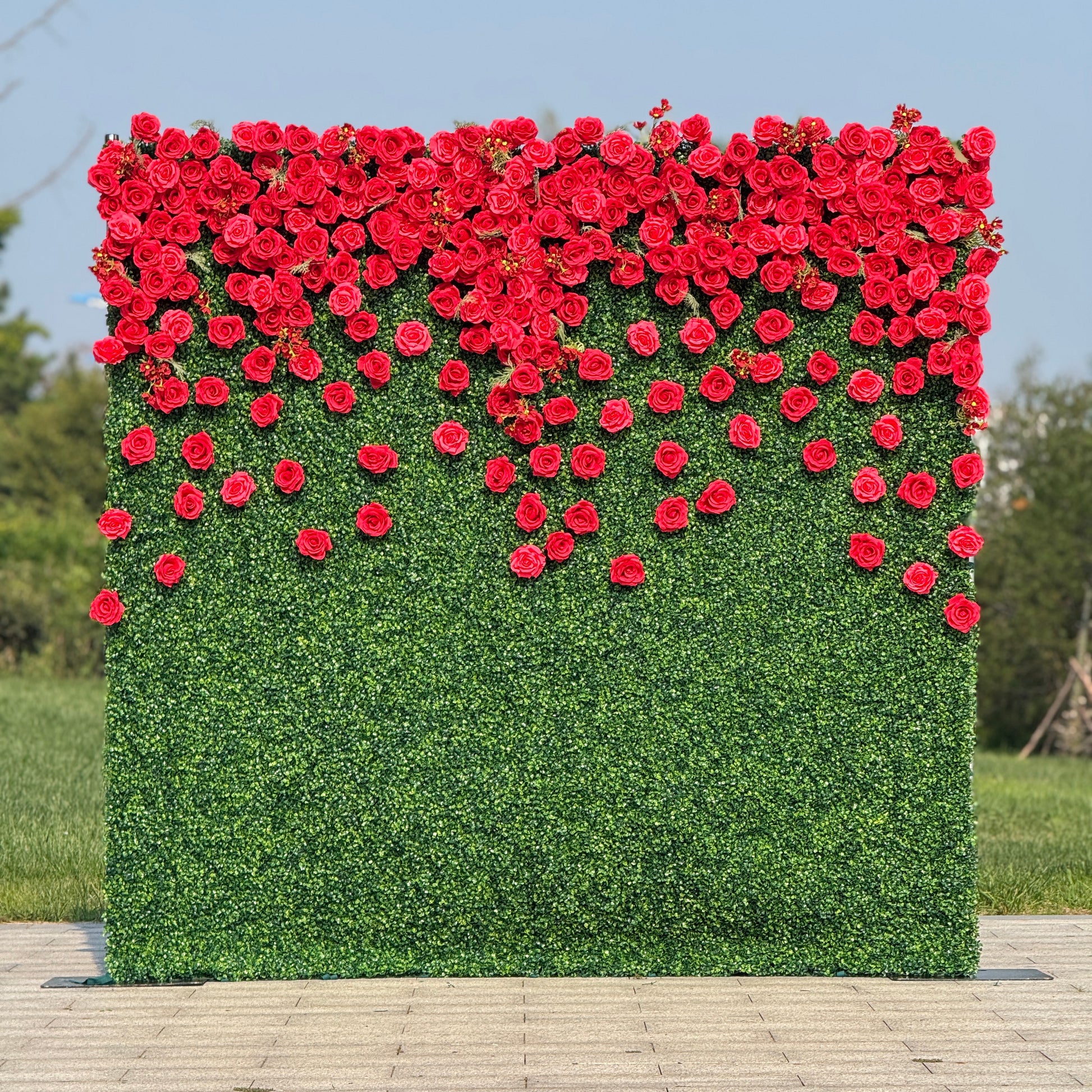 Flower Wall 3D Milan Green Wall Red Rose Fabric Rolling Up Curtain Wedding Party Decor